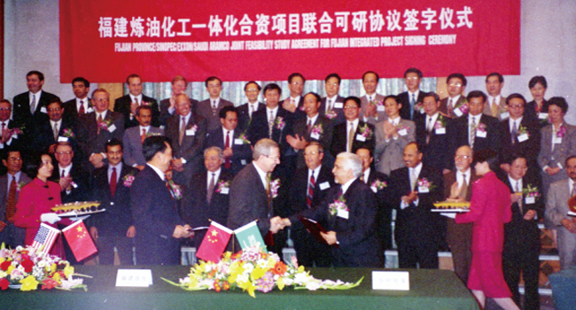 1997年10月13日,福建煉油化工一體化合資項目聯合可研協議在北京人民大會堂簽字。