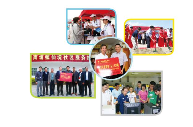 ☆ 泉港区"海西春雨行动" ☆ 帮助当地学校改善教学条件 ☆ 热情赞助"全国第六届农运会"(泉州) ☆ 改善贫困山区基础设施建设 ☆ 针对自然帮助改善周边居民生活条件 公司鼓励员工积极参与志愿者活动及其他慈善活动。 ☆ 工厂开放日活动 ☆ 无偿献血 ☆ 服务咨询 ☆ 资助失学贫困儿童